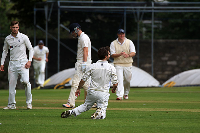Tom Foulds takes the catch to dismiss Brendan Ford