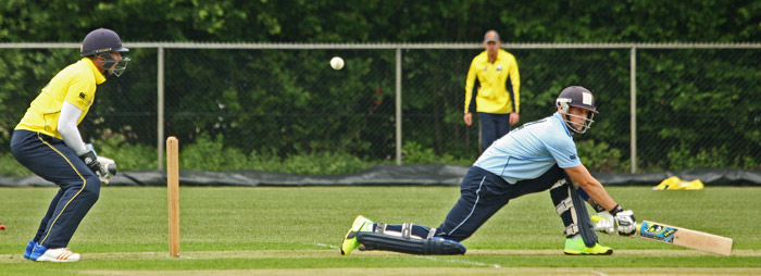 Boris Gorlee is halfway down when he's stumped by Ahmed off Hans