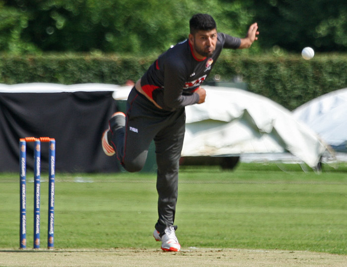Rohan Mustafa on his way to 3 for 41