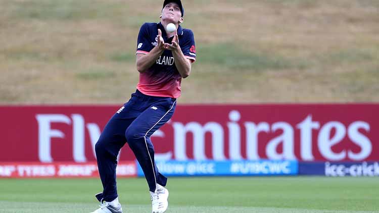 Dillon Pennington of England catches out Lohan Louwrens of Namibia