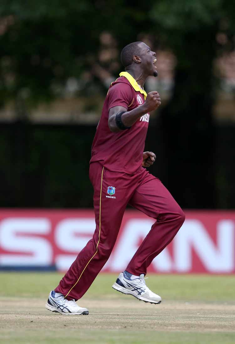 Carlos Braithwaite celebrates the wicket of Jack Vare