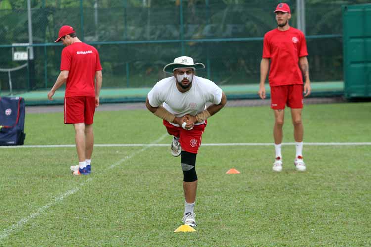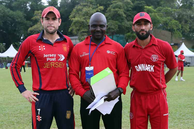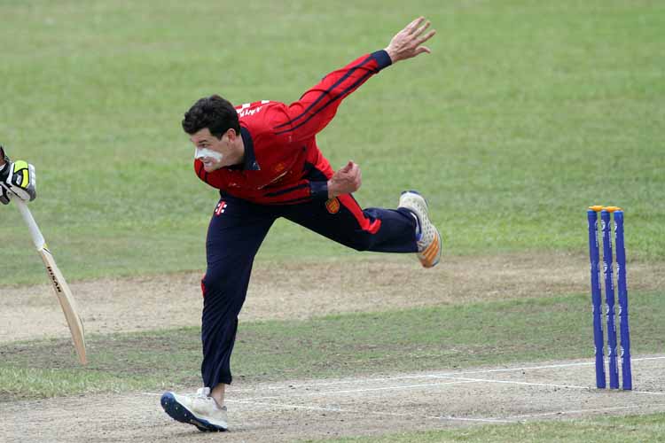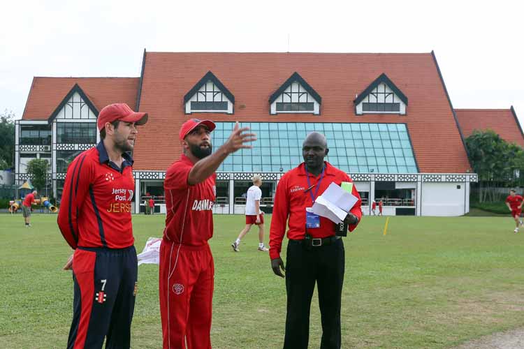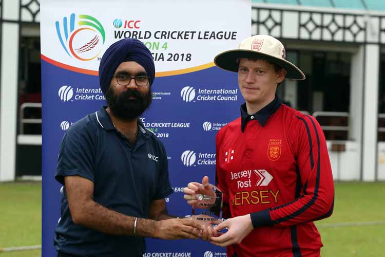 Nat Watkins receives MOM award for his 86 from Gurjit Singh