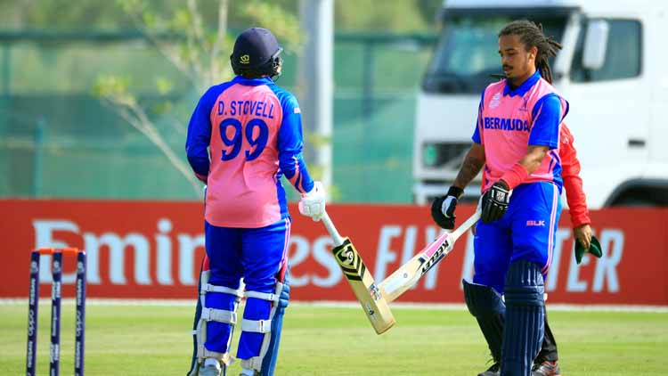 Okera Bascome and Dion Stovell between overs