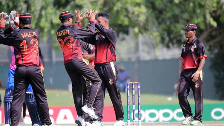 Norman Vanua is mobbed as PNG go wild after he takes a hat-trick