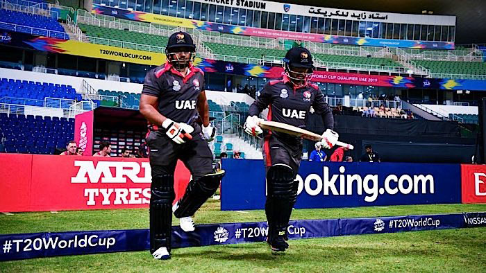 Rohan Mustafa and Ashfaq Ahmed go out to open the UAE innings