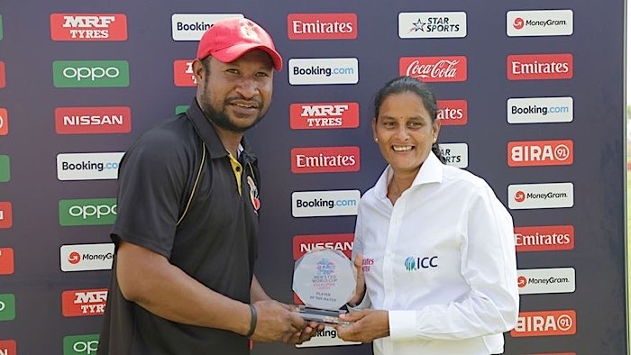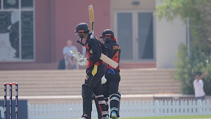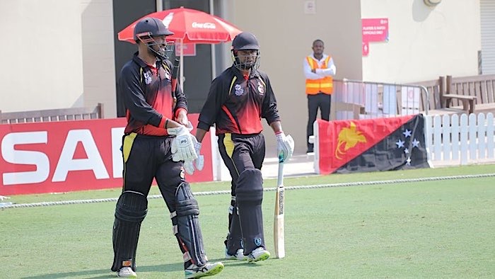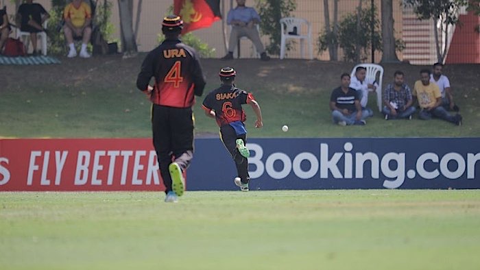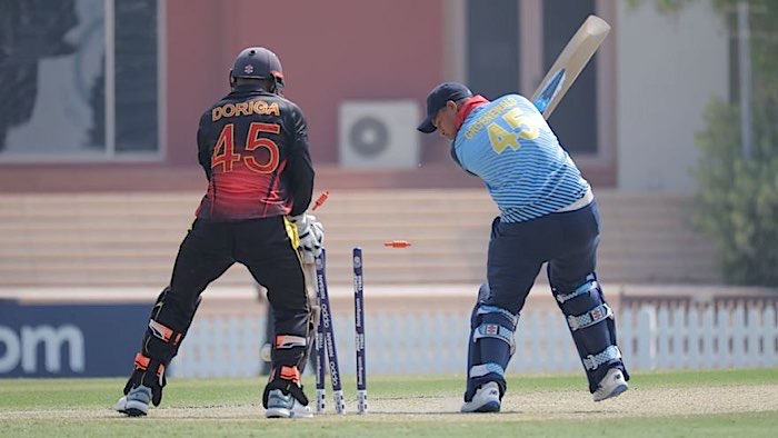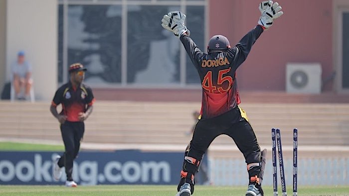 PNG wickekeeper Kipling Doriga celebrates the run out of Kotze