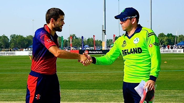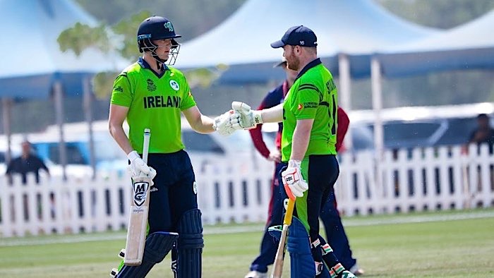 Paul Stirling and Gareth Delany discuss tactics as Ireland close in on victory