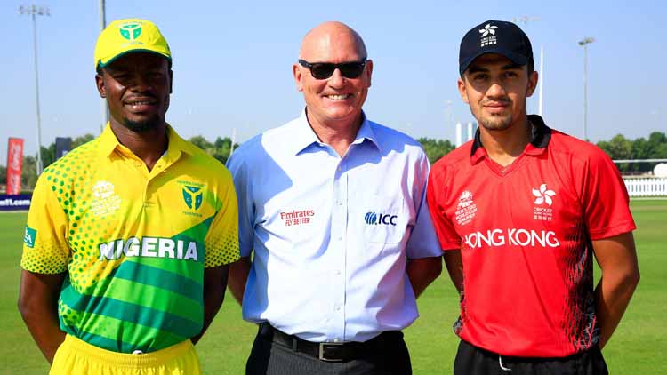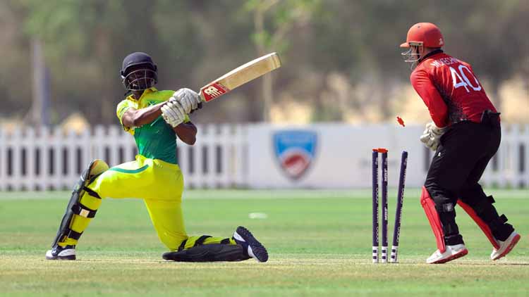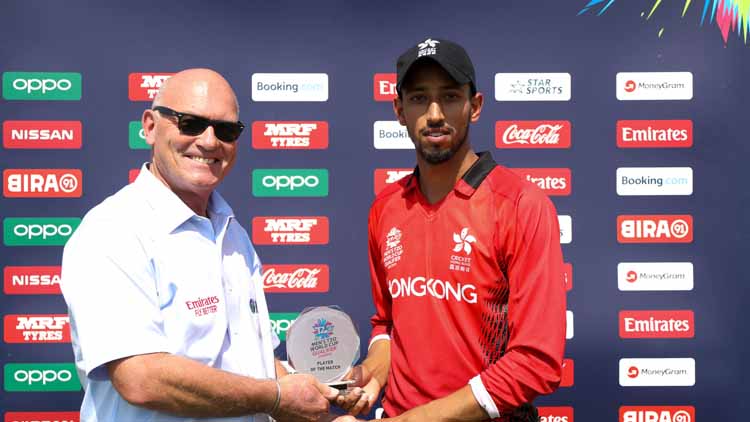 Mohammad Ghaznafar gets MOM award from ICC match referr Jeff Crowe