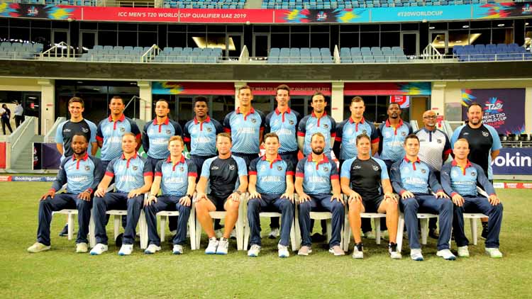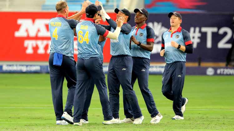 Namibia celebrate a wicket