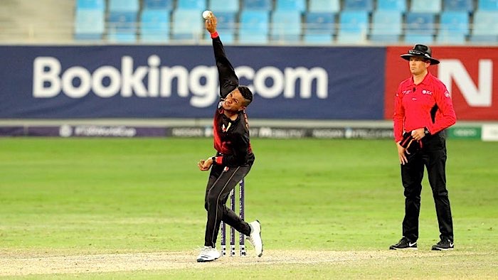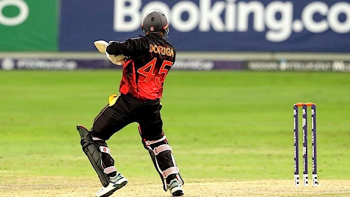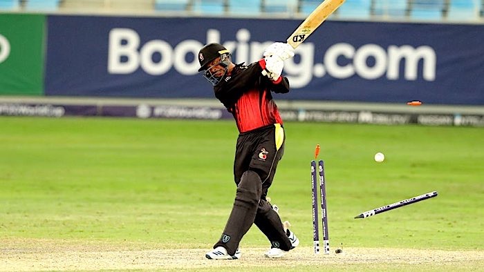 Lega Siaka is bowled by van der Merwe