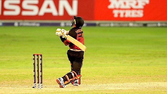 Asadollah Vala is run out by a direct hit from Tobias Visee