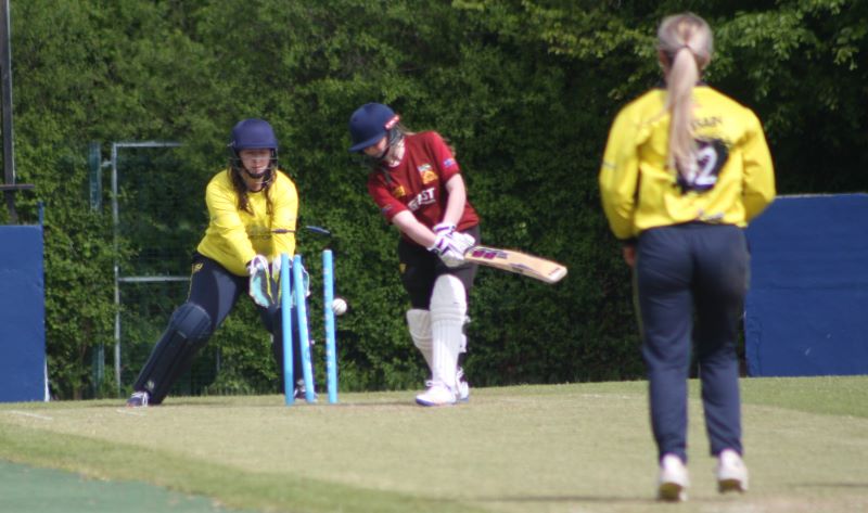 Mansi Bhavsar is stumped by Hannah McLaughlin