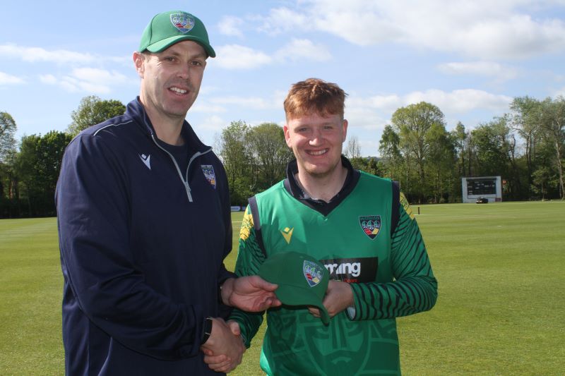 Sam Topping receives cap from Boyd Rankin