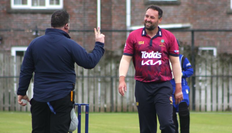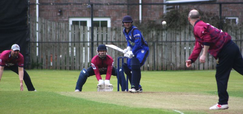Mark Averill bowling to his brother Craig