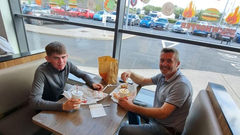 Happy meal after the win for Alfie and Giles Moan