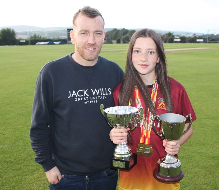Alix Dalzell gets the trophy from Julian Fowler