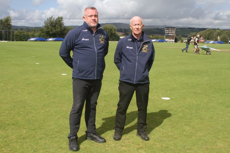 Umpires Graeme Moore and Tony McCloskey